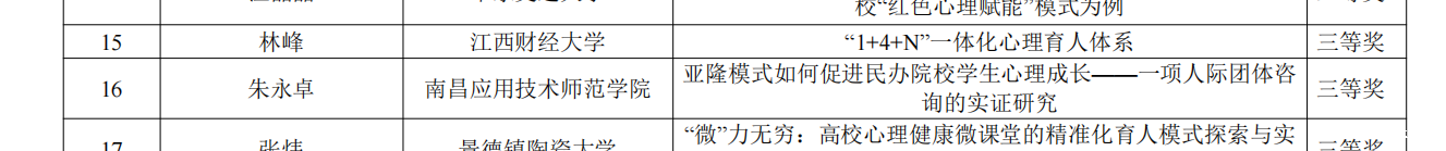 优秀学术论文奖:朱永卓《亚隆模式如何促进民办院校学生心理成长——一项人际团体咨询的实证研究》荣获三等奖。
